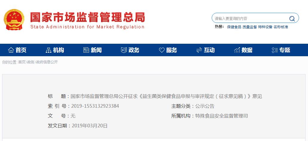 國(guó)家市場(chǎng)監(jiān)督管理總局公開(kāi)征求《益生菌類(lèi)保健食品申報(bào)與審評(píng)規(guī)定(征求意見(jiàn)稿)》意見(jiàn)