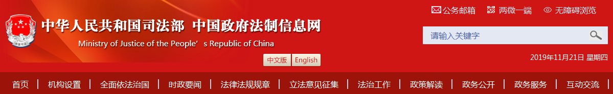 1.登陸中國政府法制信息網(網址:http://www.chinalaw.gov.cn),進入首頁主菜單的“立法意見征集”欄目提出意見。