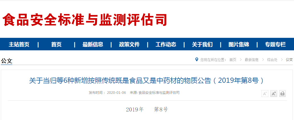 關于當歸等6種新增按照傳統既是食品又是中藥材