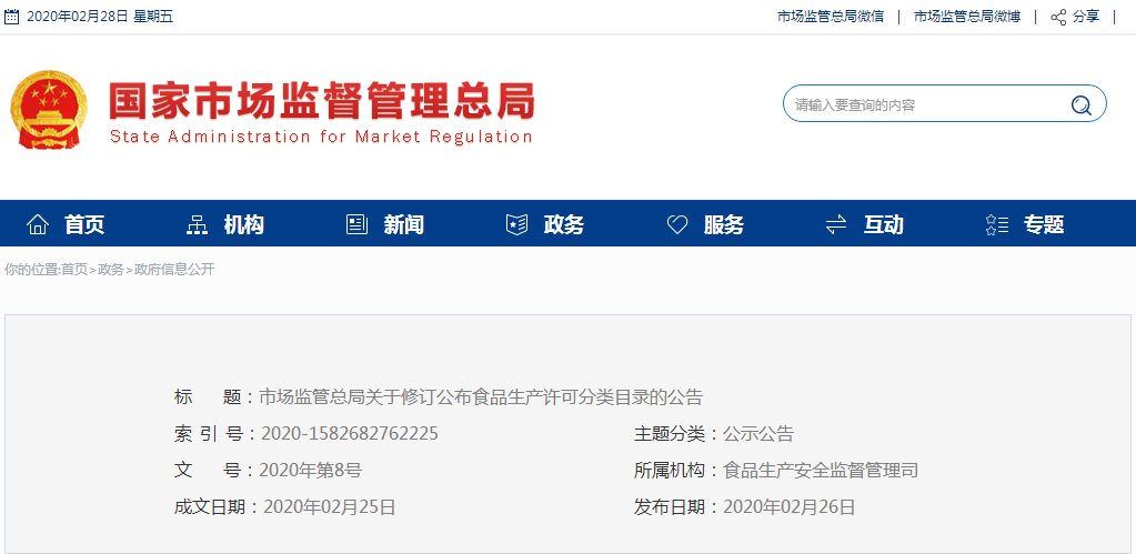 | 2802 | 特殊醫學用途嬰兒配方食品 | 特殊醫學用途嬰兒配方食品:無乳糖配方或低乳糖配方食品、乳蛋白部分水解配方食品、乳蛋白深度水解配方或氨基酸配方食品、早產/低出生體重嬰兒配方食品、氨基酸代謝障礙配方食品、嬰兒營養補充劑、其他 | 產品(注冊批準文號) | |